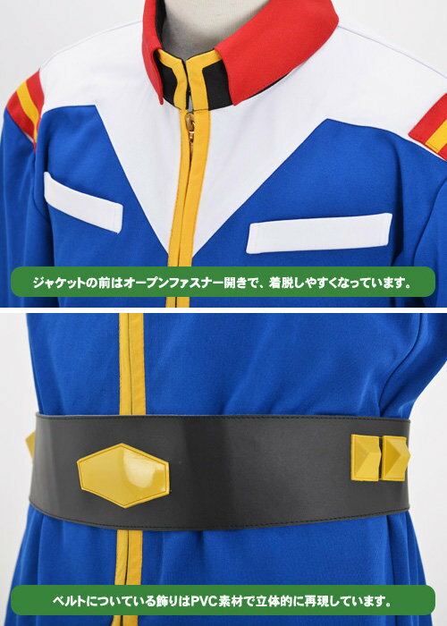 『機動戦士ガンダム』より、地球連邦軍男子制服 ブルーver.がリニューアル! M/Lサイズ展開となり、幅広い体型に対応可能になりました! これで君もホワイトペースのクルーになれる! ■ジャケット・パンツは着やすさ・動きやすさを考慮し、 シワになりにくく伸縮性のある素材を使用しています。