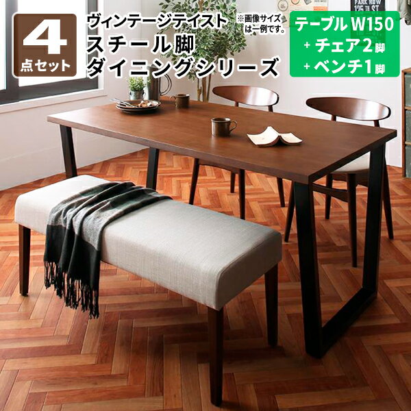 送料無料 ヴィンテージテイスト スチール脚ダイニングセット NIX ニックス 4点セット(テーブル+チェア2脚+ベンチ1脚) W150 食卓セット テーブルチェアセット ダイニングテーブルセット 500026979