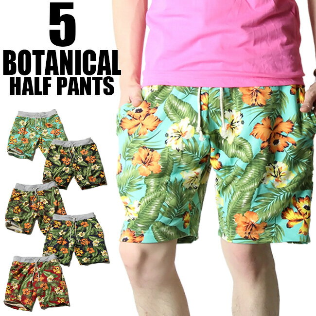 ボタニカル スウェット ハーフパンツ 5カラー【ハーフパンツ メンズ 半ズボン カラーパンツ 花柄 フラワー トレンド ショートパンツ ボタニカル柄パンツ スウェット ハーフパンツ】php006