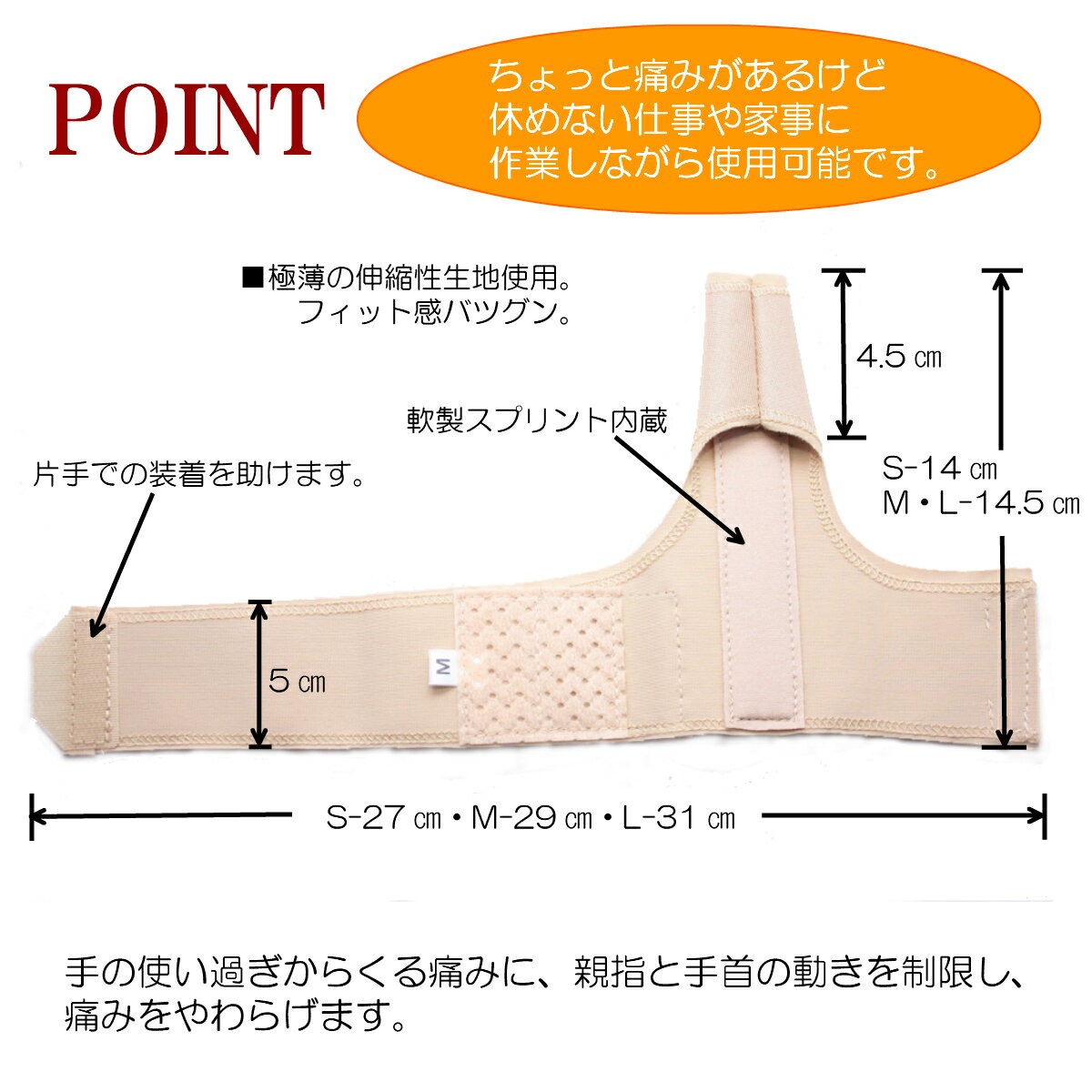 腱鞘炎 親指腱鞘炎 ばね指 バネ指 捻挫 親指 指サポーター コルセット うすサポ 左右兼用 テレビ・雑誌に人気の接骨院の先生が、自信を持ってお勧めするサポーター 腱鞘炎 親指 うす生地の サポーター 腱鞘炎 親指の痛み 関節炎 コルセット 母指 親指の痛み・親指の腱鞘炎(ドゥ・ケルバン病)用の安静固定用安静スプリント極薄設計でお仕事や手作業の邪魔になりません。