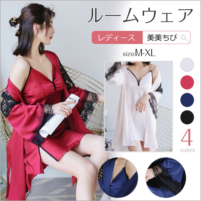 ルームウェア レディース ルームウエア パジャマ 部屋着 2点セット セクシー かわいい 春 夏 ルームウエア ワンピース 女性 無地 レース ロングガウン リラックス ネイビー ブラック ピンク ワインレッド ルームウエア シンプル 母の日